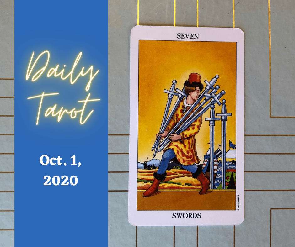 Oct. 1, 2020 A card of stealth and doing the unexpected, the 7 of Swords enters your spread when it’s time to take your leave. Sometimes, when the 7 of Swords appears, you’re walking away from a situation that has turned into a three-ring circus (work, family situation, baby daddy drama). Have you done somethingContinue reading “Daily Tarot: “Walking Away””